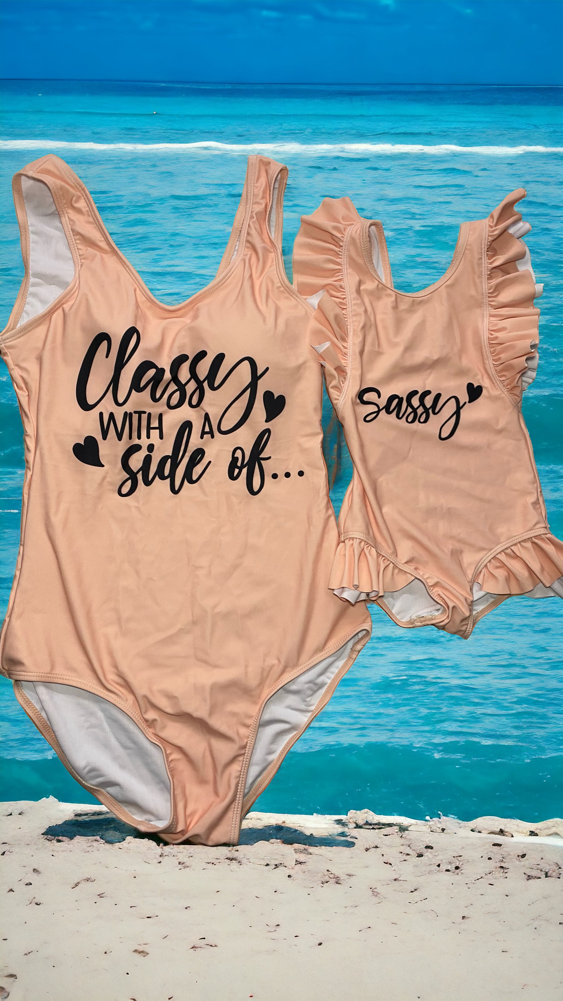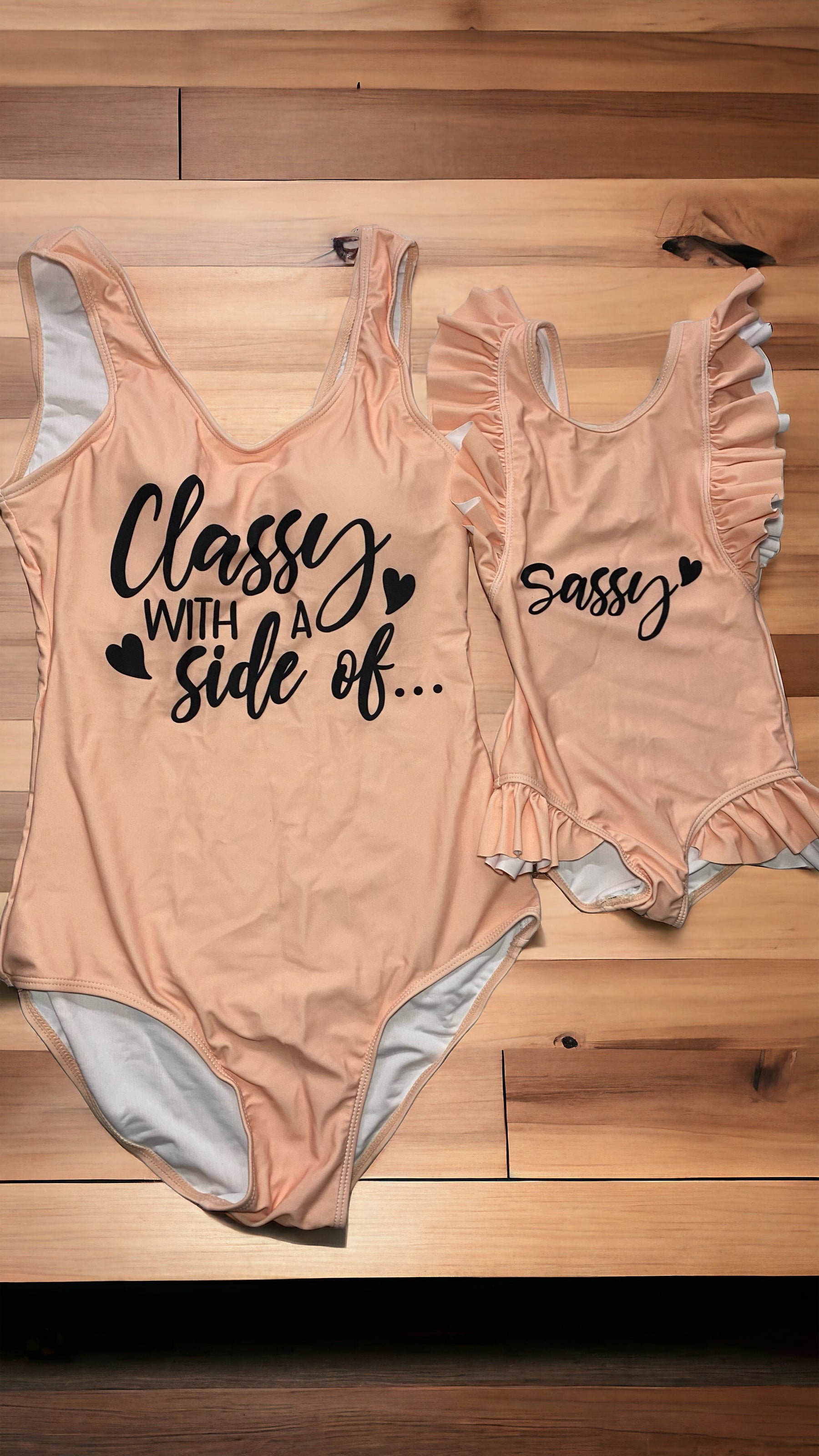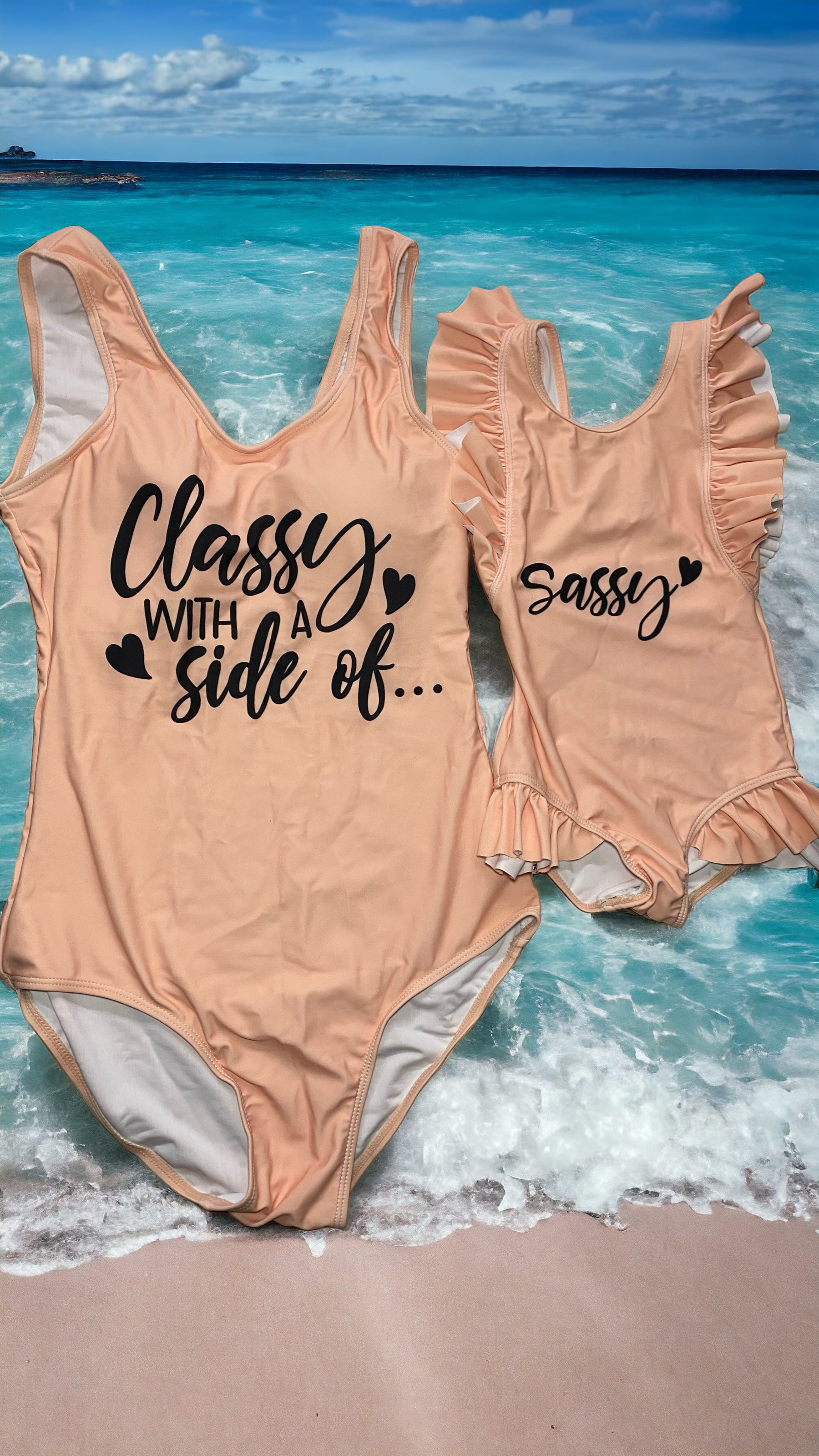 Classy with a side of ….Sassy Mommy & Me one piece bathing suits