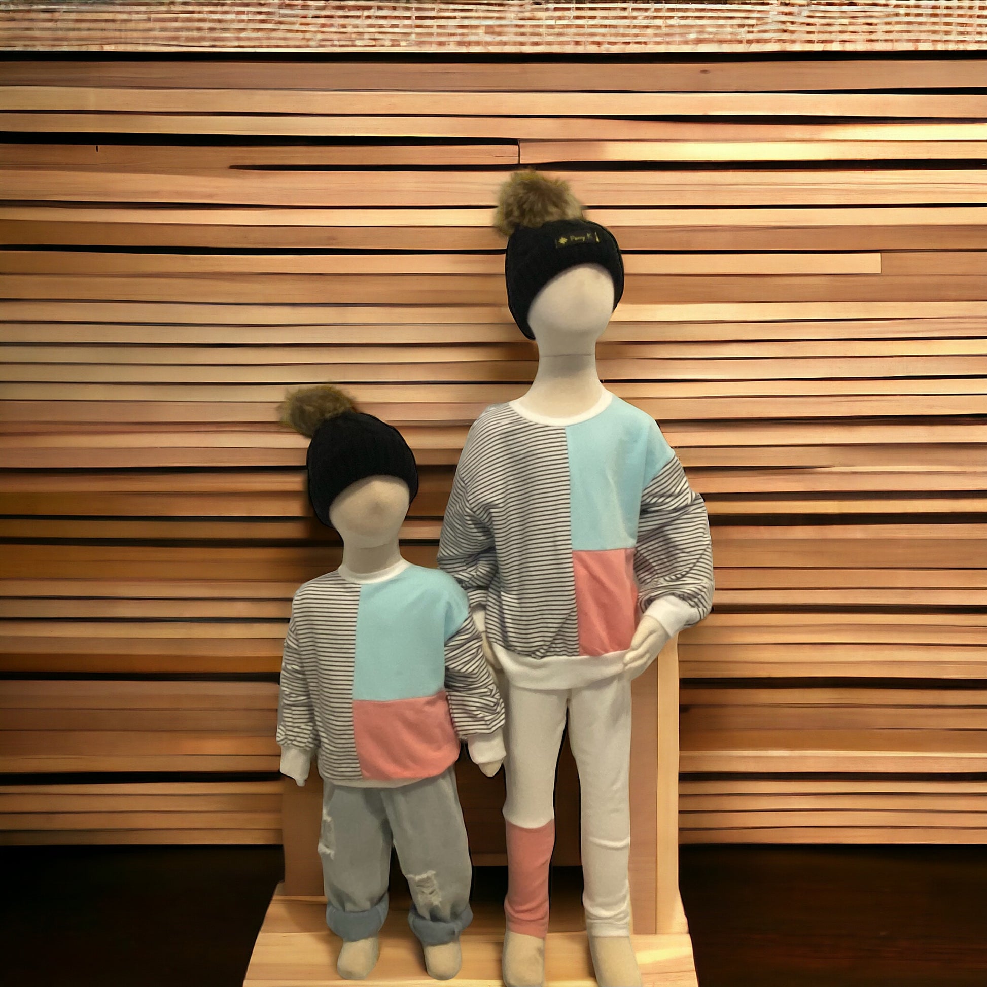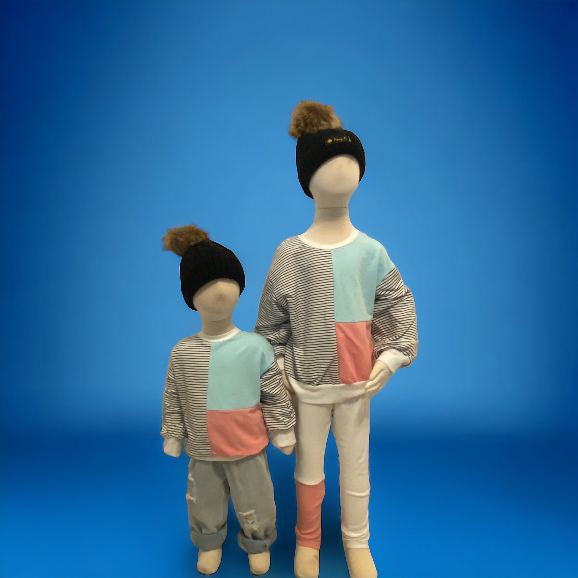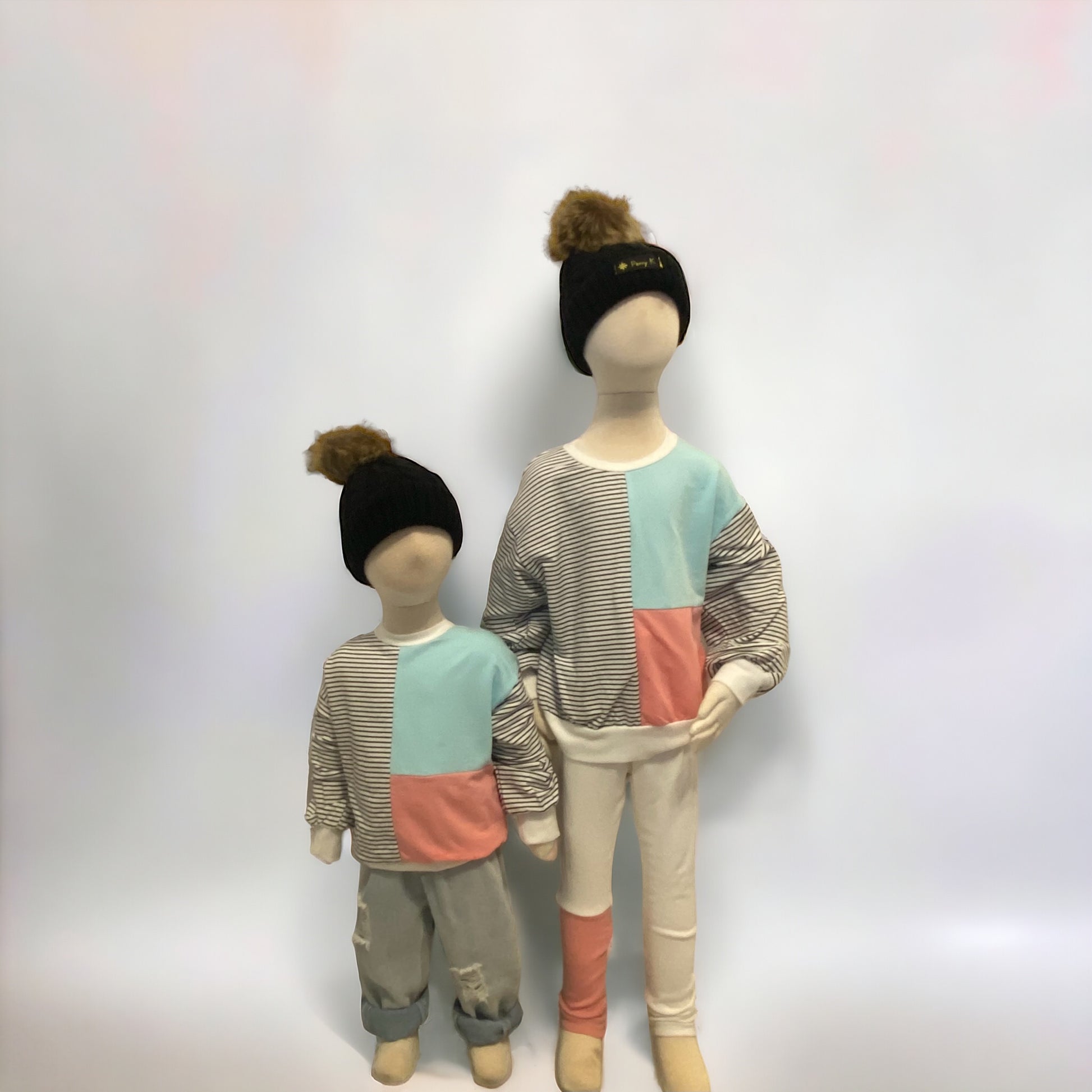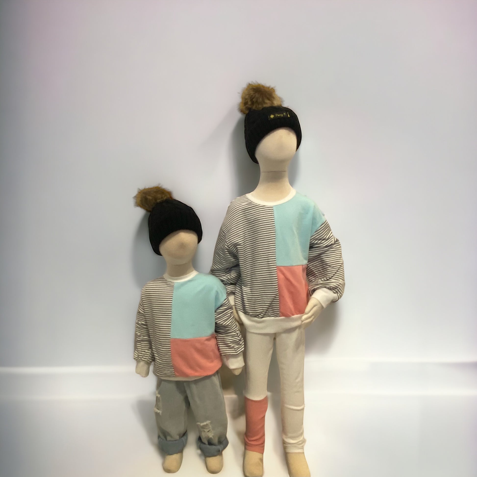 Stay stylish and comfortable in any weather with our light weight sweatshirt. Featuring a unique design with pink, blue, and stripes, it's the perfect choice for a casual day out with your little one. Stay on trend and cozy with this versatile piece.