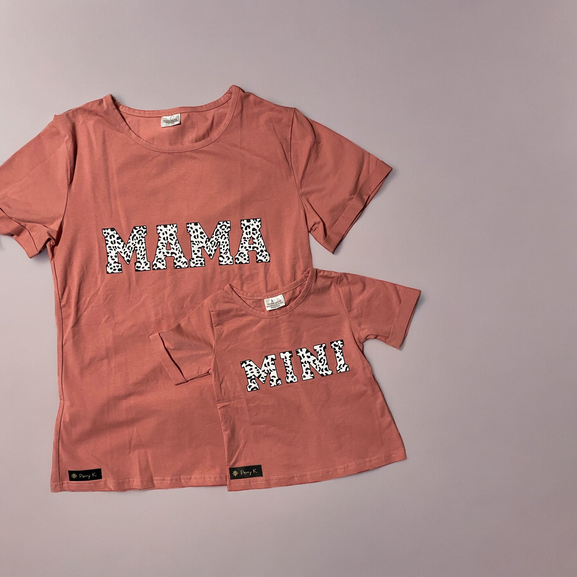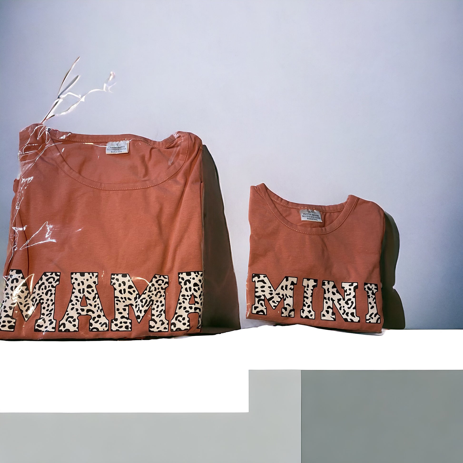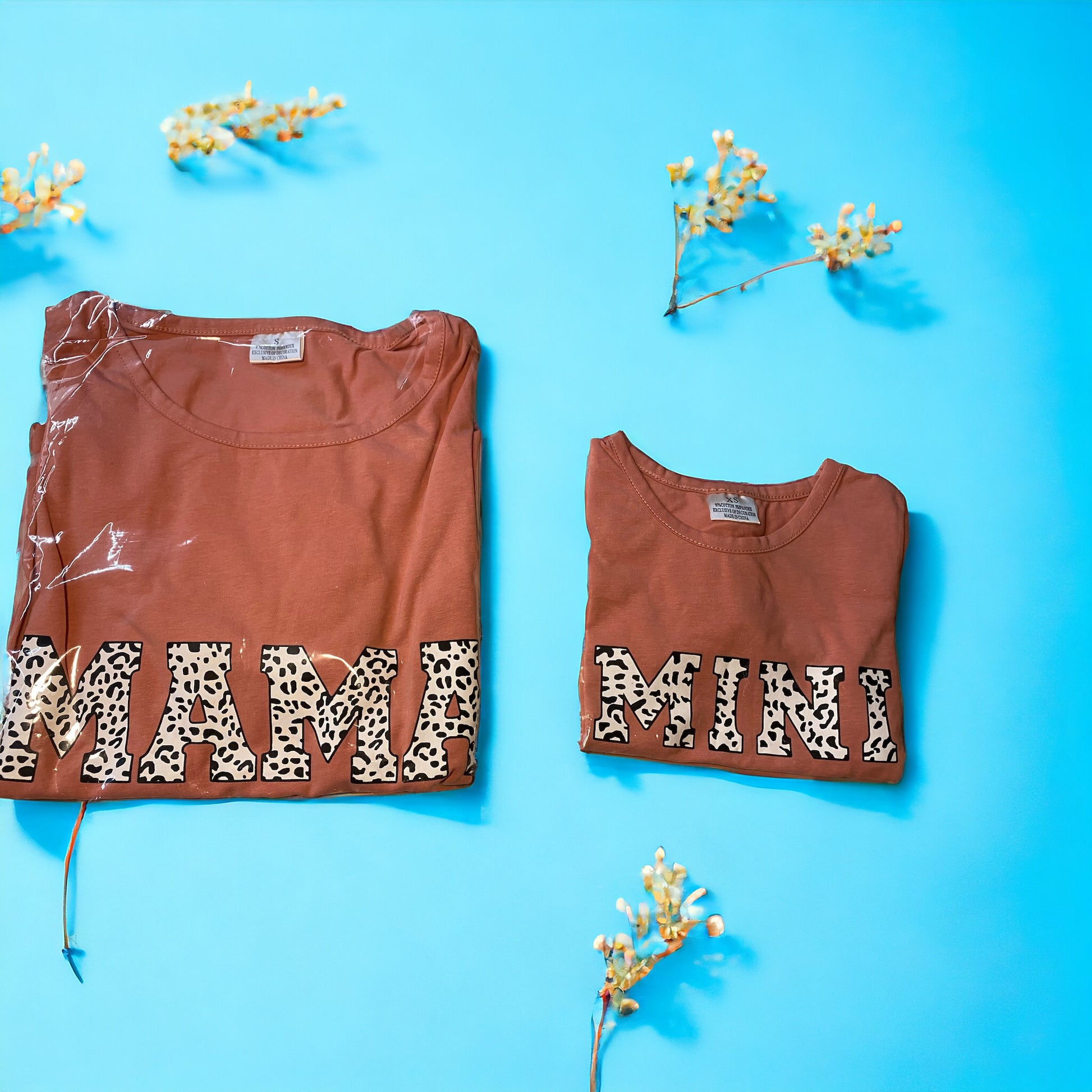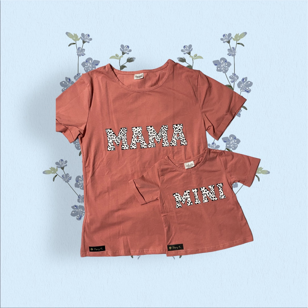 Update your mommy-and-me wardrobe with our Mama and Mini Rose pink short sleeve tees. Featuring a fun cow print lettering design, these matching tees are perfect for a day out with your little one. Whether you're running errands or enjoying a day at the park, these tees will keep you both stylish and comfortable.