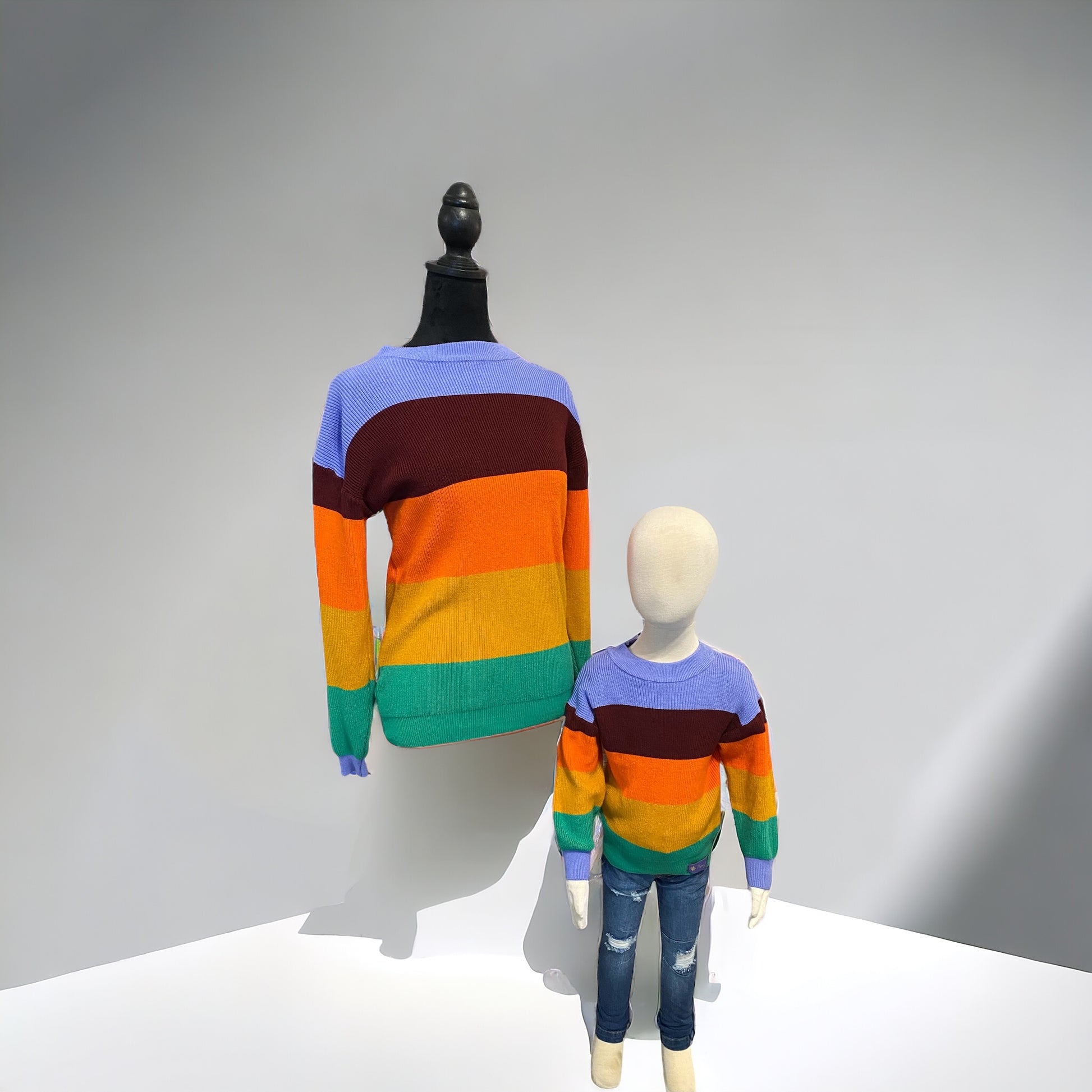 Add a touch of personal style to your seasonal wardrobe with this fashionable color block sweater, perfect for you and your mini-me to wear together."