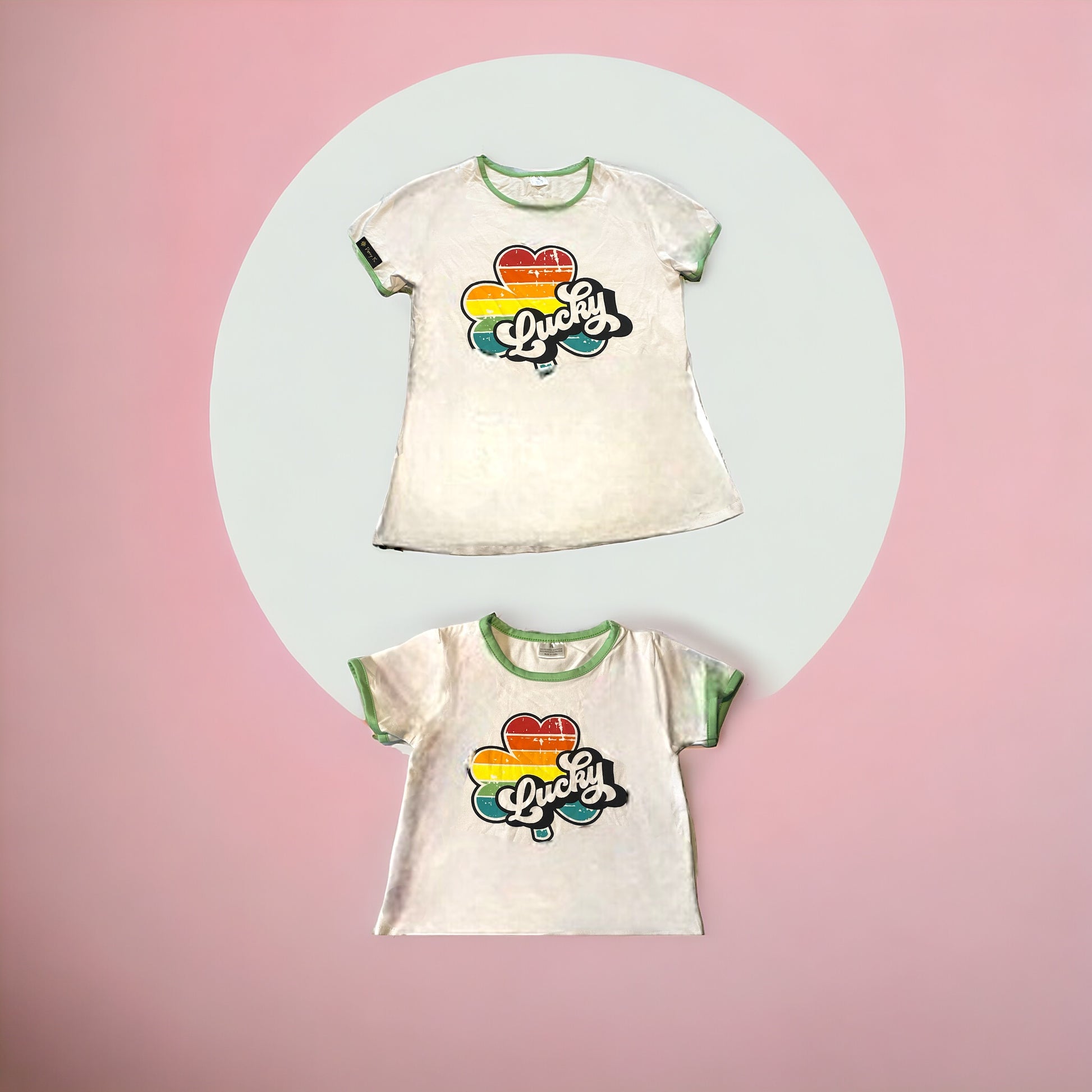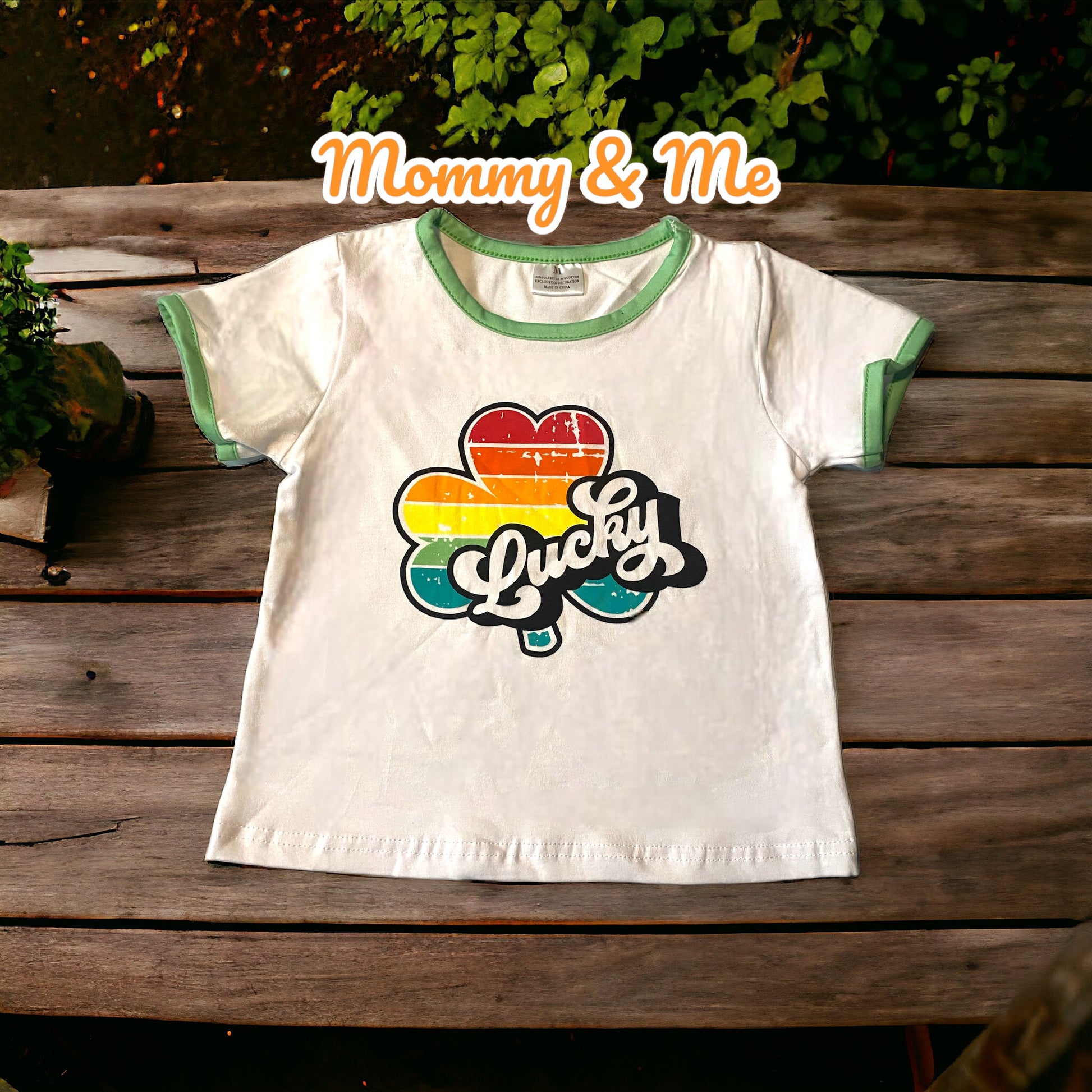 Dress your little one like their favorite person with our Mommy and Me Lucky Shirts. The outer shirt features a green rimmed collar, perfect for celebrating green clover days together. Made with love to bring joy to both mommy and child.