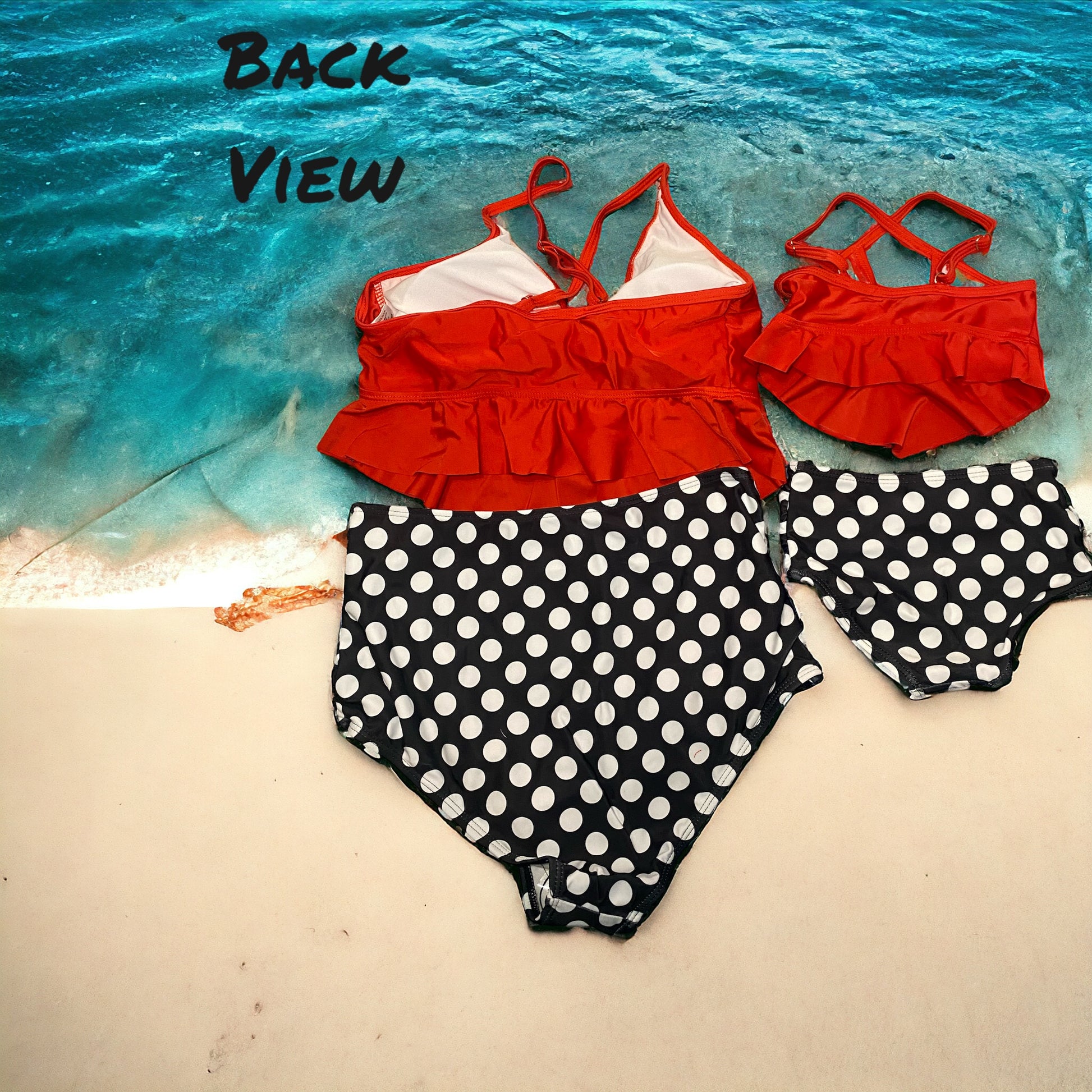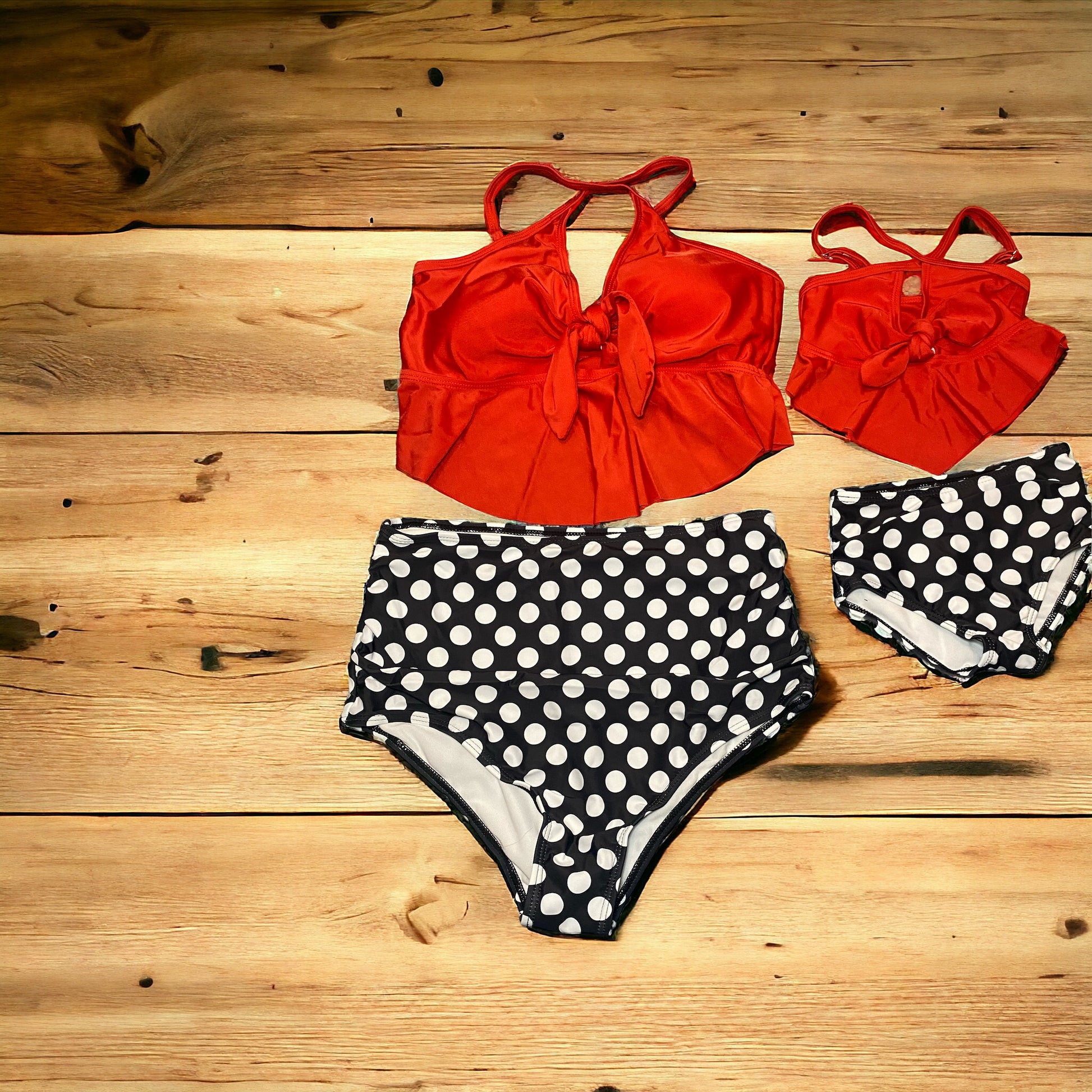 Mommy and Me Matching 2 piece red white and Black Swimsuit
