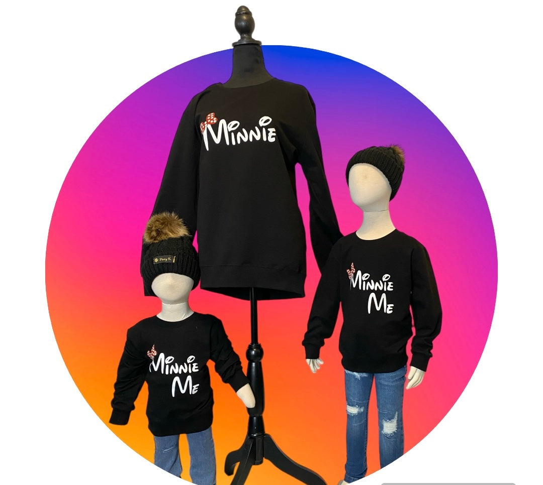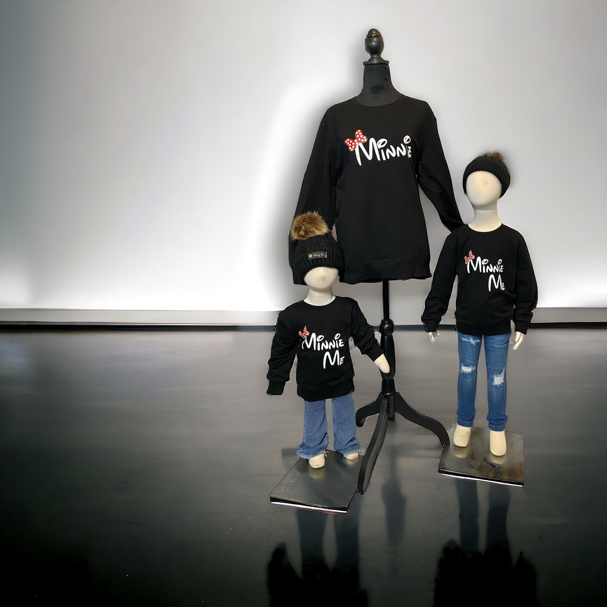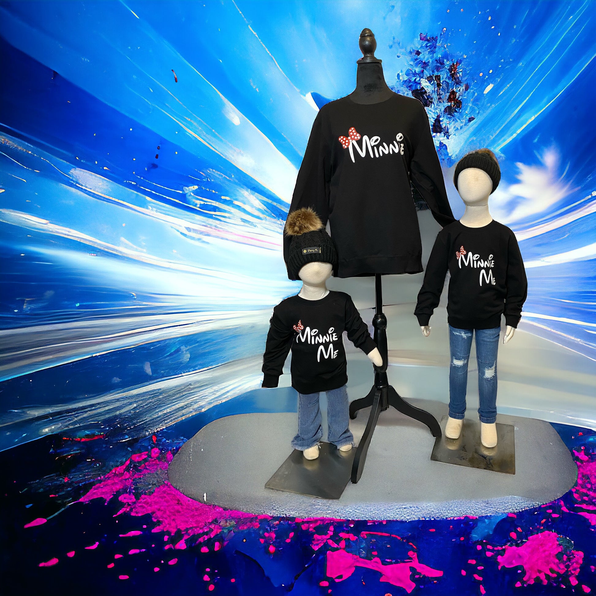 Take your little one on an adventure with these matching black Minnie sweatshirts. Stay warm and stylish together while creating special memories. Perfect for a day out at the theme park or a casual outing. Made for moms and their mini-me's.