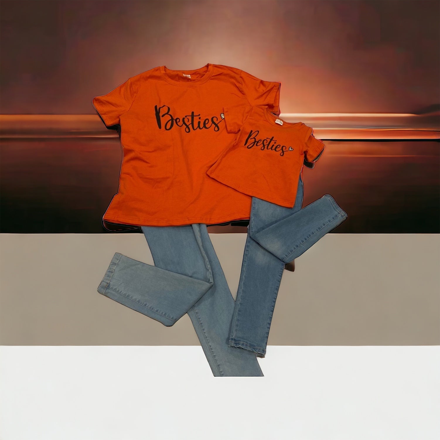 Elevate your mommy-and-me style with our Pumpkin Mommy & Me Besties shirt. Perfect for a casual outing or a coordinated family look, this comfortable and stylish shirt in warm pumpkin hues is the ultimate choice for you and your little one. Feel confident and chic all day long!