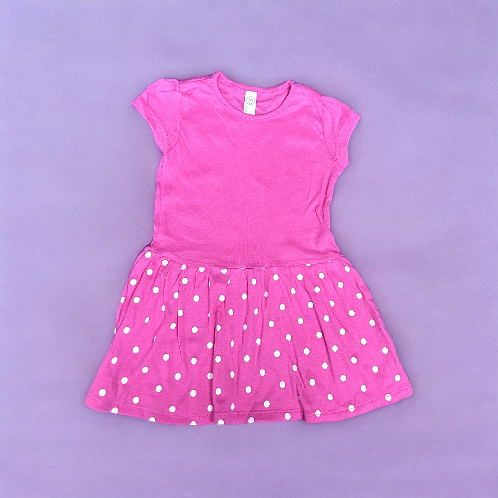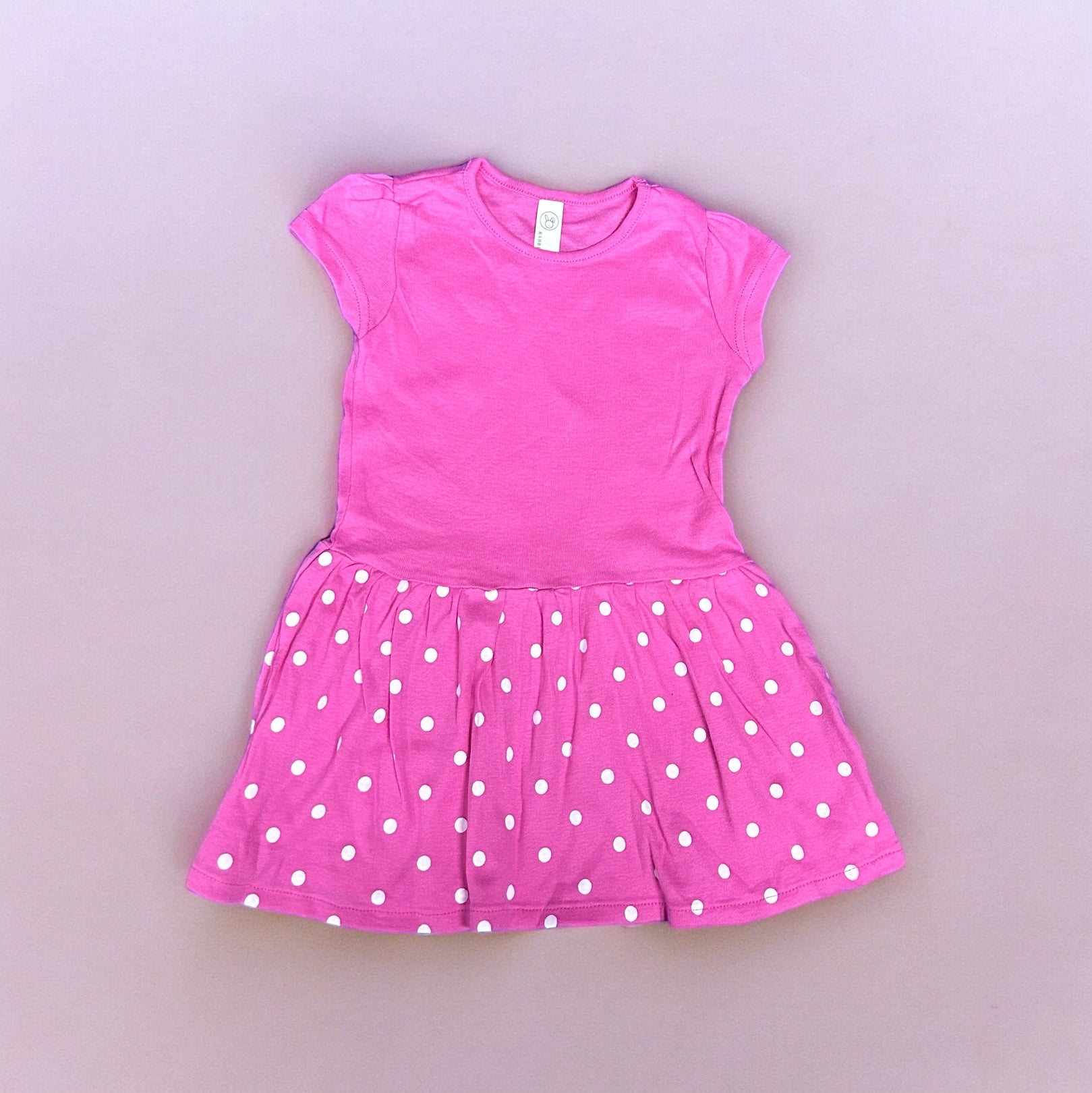 This Pink & White polka dot dress, made from 100% cotton, is the perfect addition to any child's wardrobe. It is both versatile and stylish, and can be fully customized for a perfect fit. Whether your child is dressed up or down, they will look beautiful and feel comfortable in this dress. Its design is reminiscent of Minnie Mouse, making it a fun and fashionable choice.