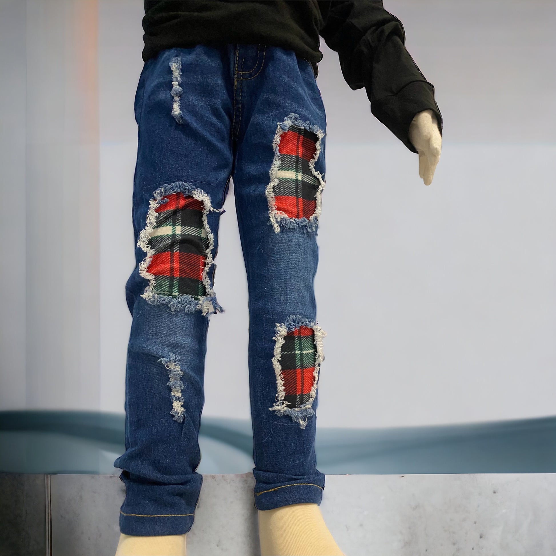 Upgrade your wardrobe today with our Billie jeans unisex plaid patches pants, perfect for the plaid season. These stylish pants feature plaid patches that add a unique touch to any outfit. Crafted with high-quality materials, they provide both comfort and durability. Don't miss out on these trendy pants!