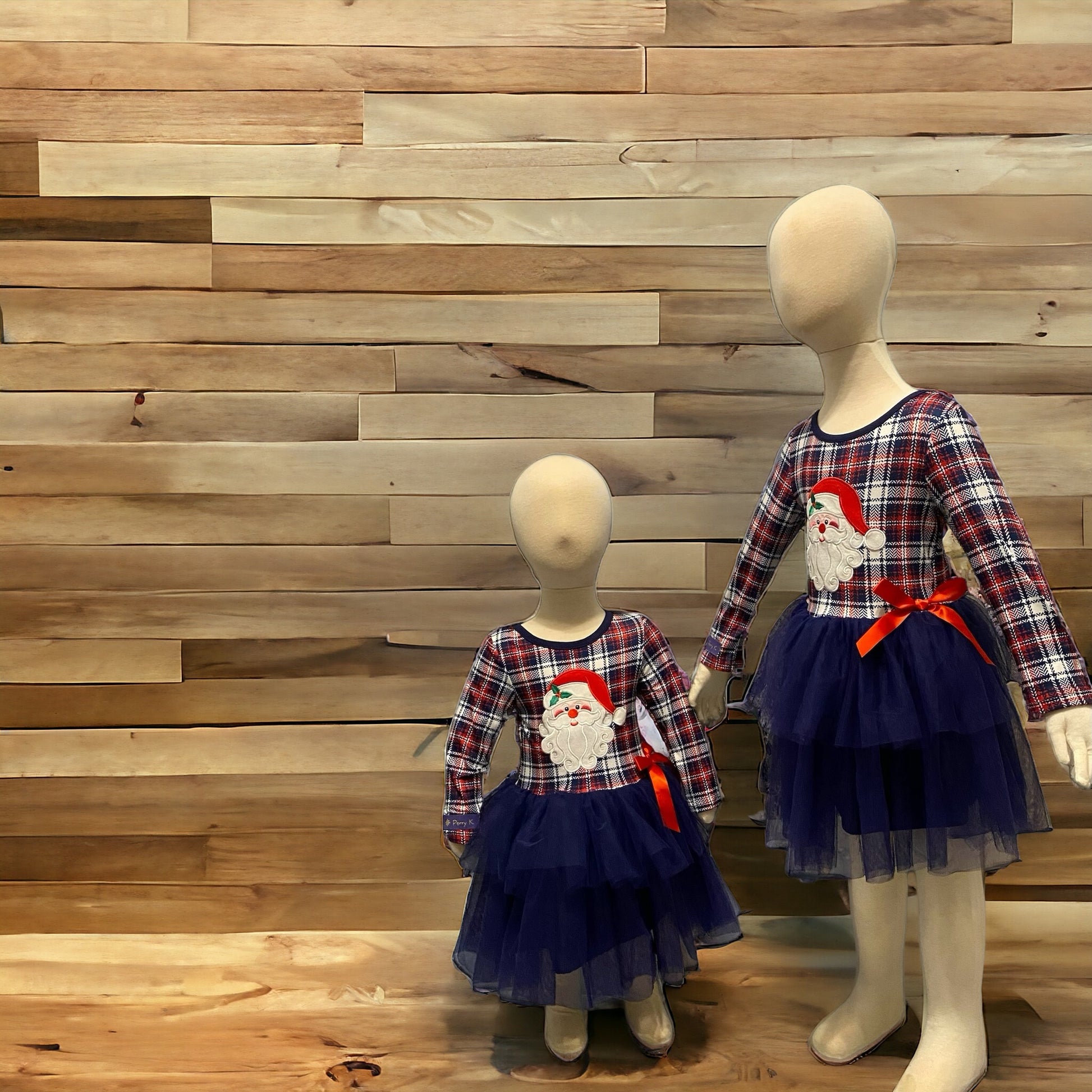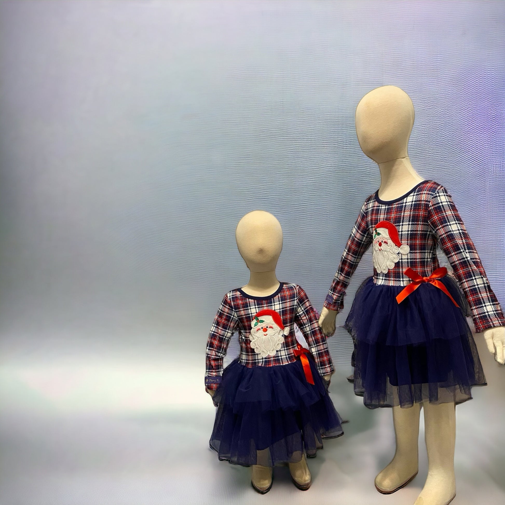 Introducing the stunning Perry K Santa plaid dress. This tutu dress is the perfect addition to your wardrobe this season, featuring a festive Santa design and a red bow. Made with high-quality materials, it combines style and comfort for a truly special dress. Get ready to spread some holiday cheer with this beautiful dress.
