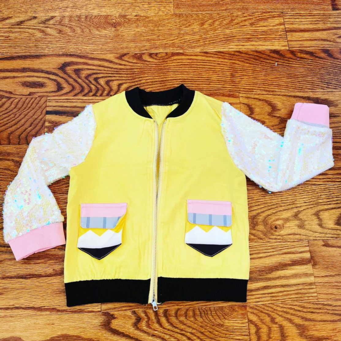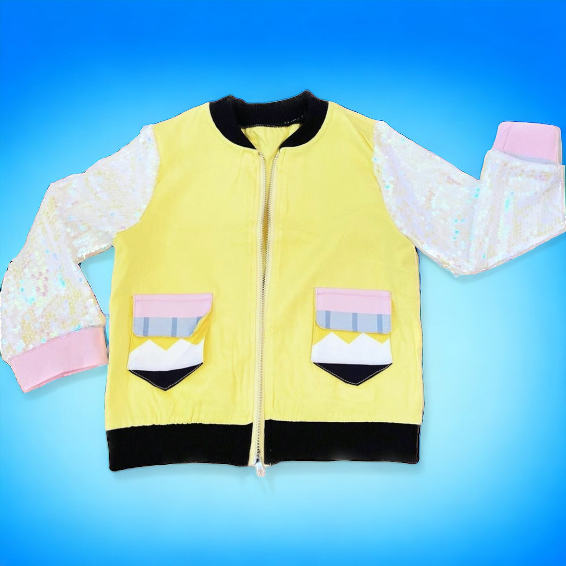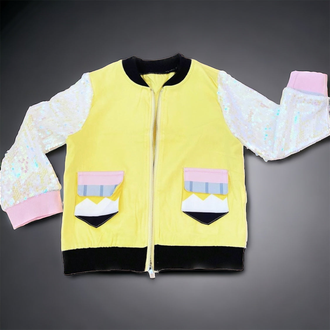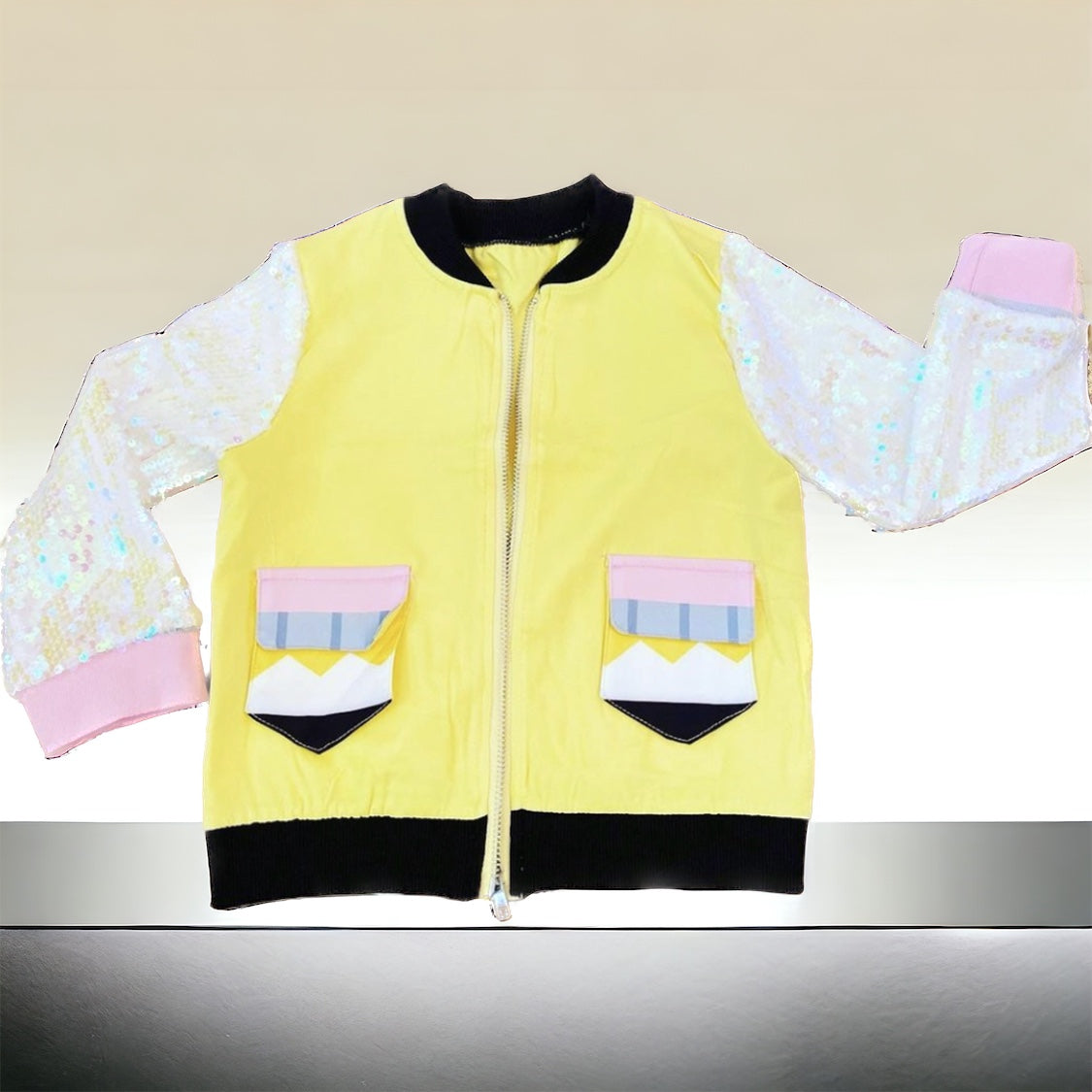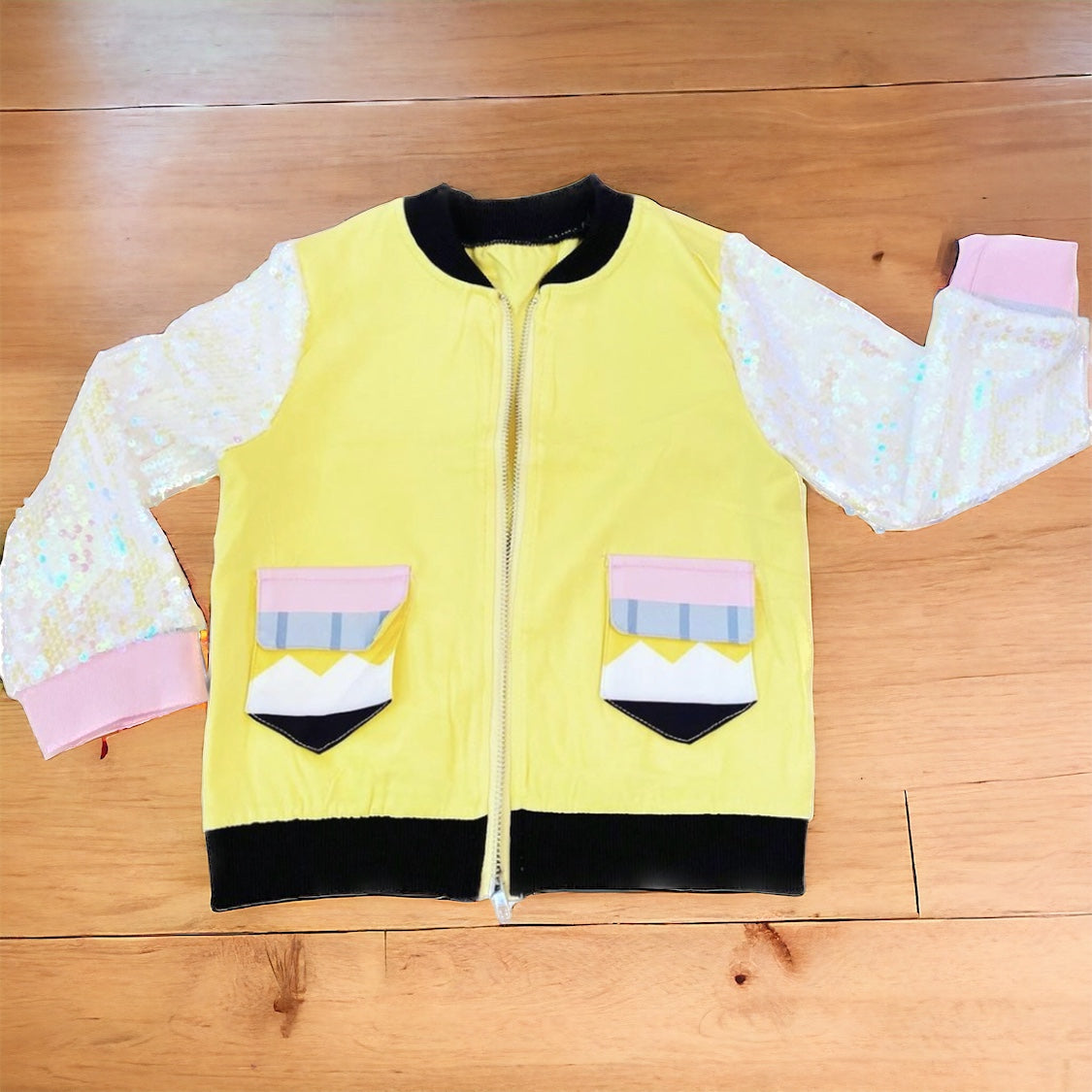 This sophisticated jacket features sequin embellishments on the arms and practical pencil pockets, making it the perfect choice for adding a touch of sparkle to your daily wardrobe.